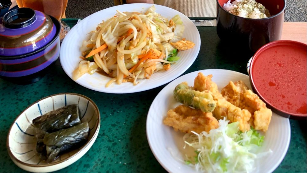 山から降りてきてからご飯を食べました。ぼくは日替わり定食にしました。お腹いっぱいになりました。