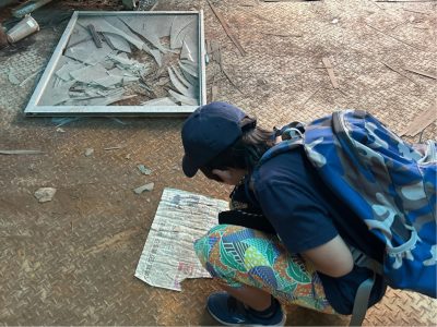 割れたガラスなどもそのままになっていたりもするので、見学の際は注意が必要です。はしごを登ったり降りたり、ちょっと怖いと思う場所もありました。